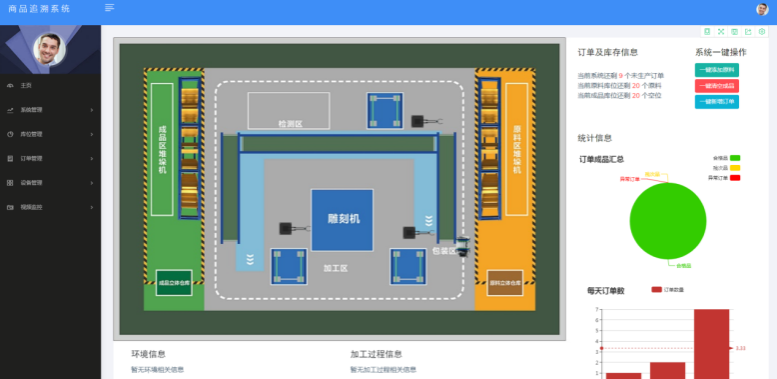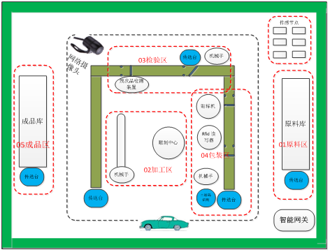 系統(tǒng)按區(qū)域劃分,有5個區(qū),分別是原料區(qū)、加工區(qū)、檢驗區(qū)、包裝區(qū)、成品區(qū)。