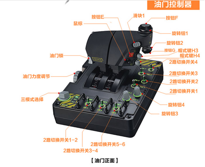 民航:塞斯納YOKE搖桿、腳跺、飛行儀表裝置等 戰(zhàn)斗機:套賽鈦客X-55(左手油門桿、搖桿) |