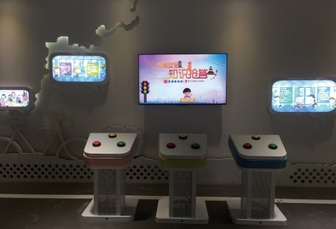 設(shè)置交通安全知識答題測驗裝置,讓參觀者結(jié)合前面學(xué)到的交通安全知識回答測試問題,以此檢驗參觀學(xué)習(xí)的效果,成績優(yōu)良者可以并給予一定的物質(zhì)獎勵。無需裁判,自動計分,并統(tǒng)計成績和排名,富有樂趣,管理方便,安全自助式不需要任何人來協(xié)助