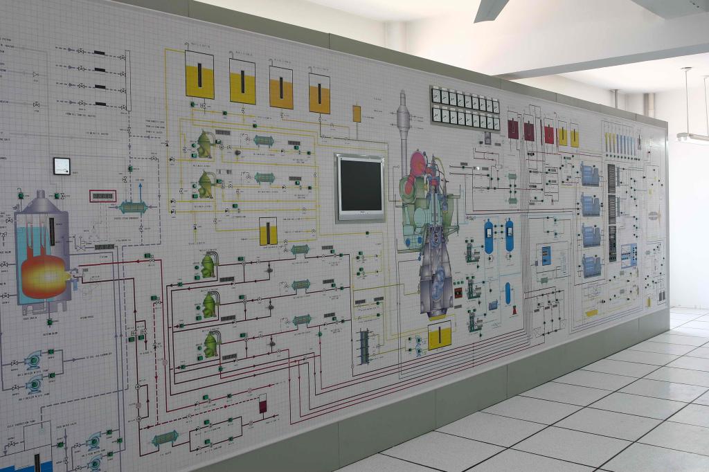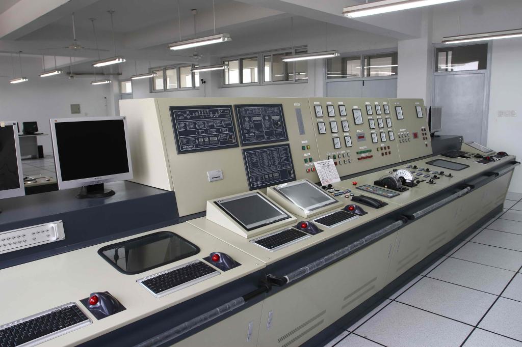 輪機(jī)模擬器以的第五代大型集裝箱船為母型船,模擬了機(jī)艙集中控制室、駕控室、自動(dòng)化電站和主機(jī)機(jī)旁操縱臺(tái)等設(shè)備,并根據(jù)教學(xué)實(shí)際需要,設(shè)置了大型動(dòng)態(tài)模擬操作板、10個(gè)機(jī)艙仿真子系統(tǒng)和機(jī)艙漫游虛擬現(xiàn)實(shí)系統(tǒng)。能夠?qū)Υ安裼椭鳈C(jī)及其遙控系統(tǒng)進(jìn)行模擬、演示,可監(jiān)視主機(jī)工況,還可對(duì)船舶電站及電力系統(tǒng)、集中監(jiān)控和報(bào)警系統(tǒng)、中央冷卻水系統(tǒng)、滑油系統(tǒng)、燃油系統(tǒng)、壓縮空氣系統(tǒng)、蒸汽系統(tǒng)、壓載水系統(tǒng)、污水系統(tǒng)等許多功能和流程進(jìn)行仿真模擬。另外,本套設(shè)備的教練員站軟件系統(tǒng),能為各子系統(tǒng)設(shè)置總共5000個(gè)以上的故障,成為分析故障、解決問題的高級(jí)平臺(tái),可對(duì)輪機(jī)員的資質(zhì)進(jìn)行評(píng)估。