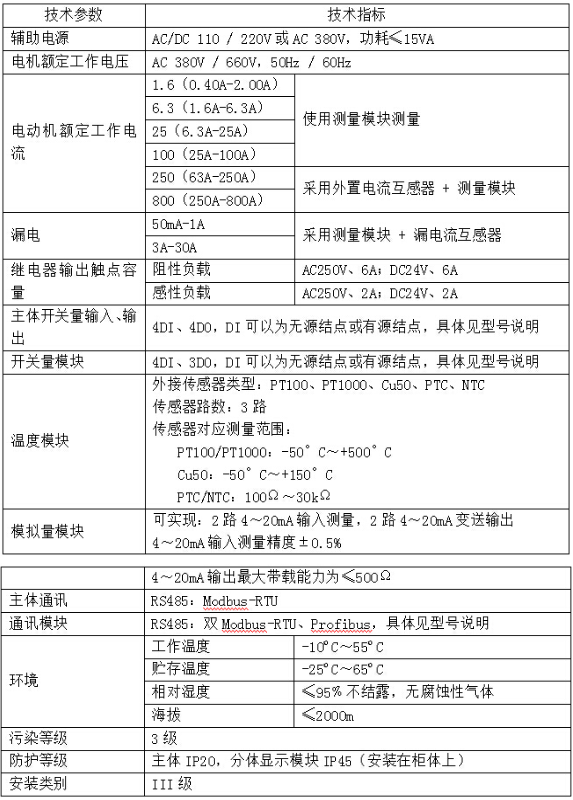 注:>250kW的低壓電動機,額定電流小于800A時均可選用800A等級的電動機保護器。