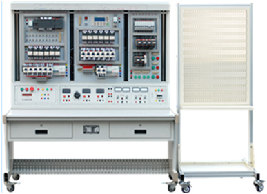2.1 臺架包含實訓(xùn)桌、實訓(xùn)臺、電氣安裝架、考核掛板存放柜等。實驗桌有一個帶鎖抽屜,便于存放實訓(xùn)指導(dǎo)書、實訓(xùn)工具及附件,掛板柜便于存放常用的考核掛板;實訓(xùn)臺有時間管理器,可以設(shè)定考核時間, 0~250/2A交流可調(diào)電源1路,380/2A三相交流電源2路、220V/2A單相電源2路、0~30V/2A直流可調(diào)電源1路、實訓(xùn)照明日關(guān)燈等。