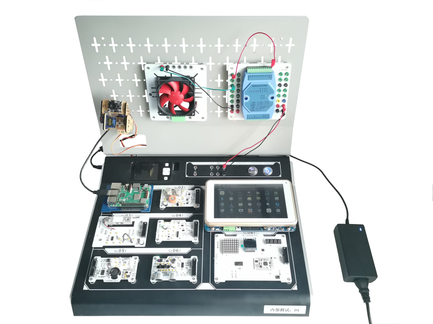 1、硬件部分采用F-Table實(shí)驗(yàn)臺體,具有八個(gè)尺寸不同的插槽、一個(gè)可拆卸網(wǎng)板、小型信號示波器、3V/5V/12V電源插孔。插槽處用于安裝原理級實(shí)驗(yàn)?zāi)K,磁吸固定,探針連接信號(RS232、TTL UART、5V、3.3V)。網(wǎng)板支持商用級模塊磁吸安裝,導(dǎo)線連接。平臺支持靈活組合,可與人工智能Python主板、人工智能Android主板、智能網(wǎng)關(guān)通信,進(jìn)行IOT基礎(chǔ)教學(xué)實(shí)驗(yàn)、人工智能應(yīng)用實(shí)驗(yàn)。外觀如下圖: