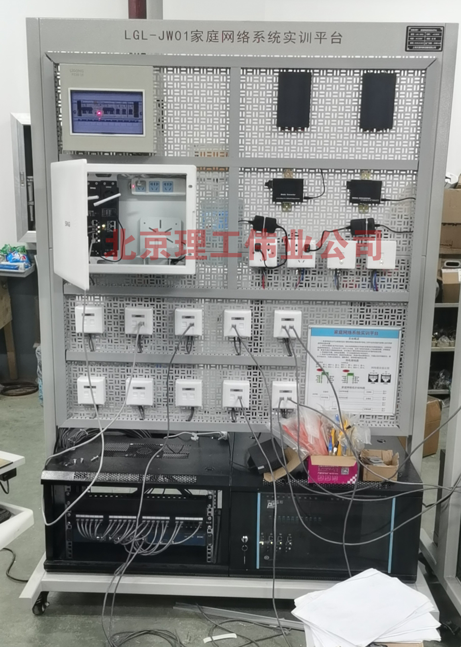 1、LGL-JW01型 家庭網(wǎng)絡系統(tǒng)實訓平臺設備采用開放式網(wǎng)孔開型臺架、網(wǎng)絡設備、工業(yè)鋁型材支架、高級噴塑鋼網(wǎng)孔掛板、電源控制器、配備工業(yè)用電源模塊、輔材及工具等組成;配備有移動腳輪,方便移動及安裝。