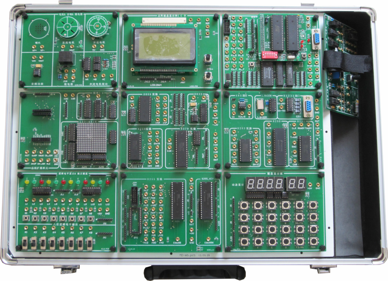 模塊化多CPU創(chuàng)新單片機(jī)實(shí)訓(xùn)實(shí)驗(yàn)箱采用雙層設(shè)計(jì),底層為電源底板層,上層為模塊層;為開放式結(jié)構(gòu);模塊層設(shè)置有標(biāo)配九塊(140x10)大小相等的模塊,其余模塊供選配,用旋鈕式螺絲把模塊安裝在實(shí)驗(yàn)箱底板上,拆換方便,每個(gè)模塊通過旋鈕式螺絲把模塊電源接口連接在電源底板層上。底板主要為模塊提供固定安裝和穩(wěn)壓電源,模塊按功能分為分為CPU模塊和實(shí)驗(yàn)?zāi)K兩大類。