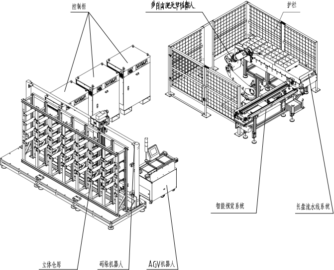 (1) 碼垛機(jī)立庫(kù)系統(tǒng),用于存儲(chǔ)物品托盤(pán),并且按照要求碼垛機(jī)完成出庫(kù)和入庫(kù);