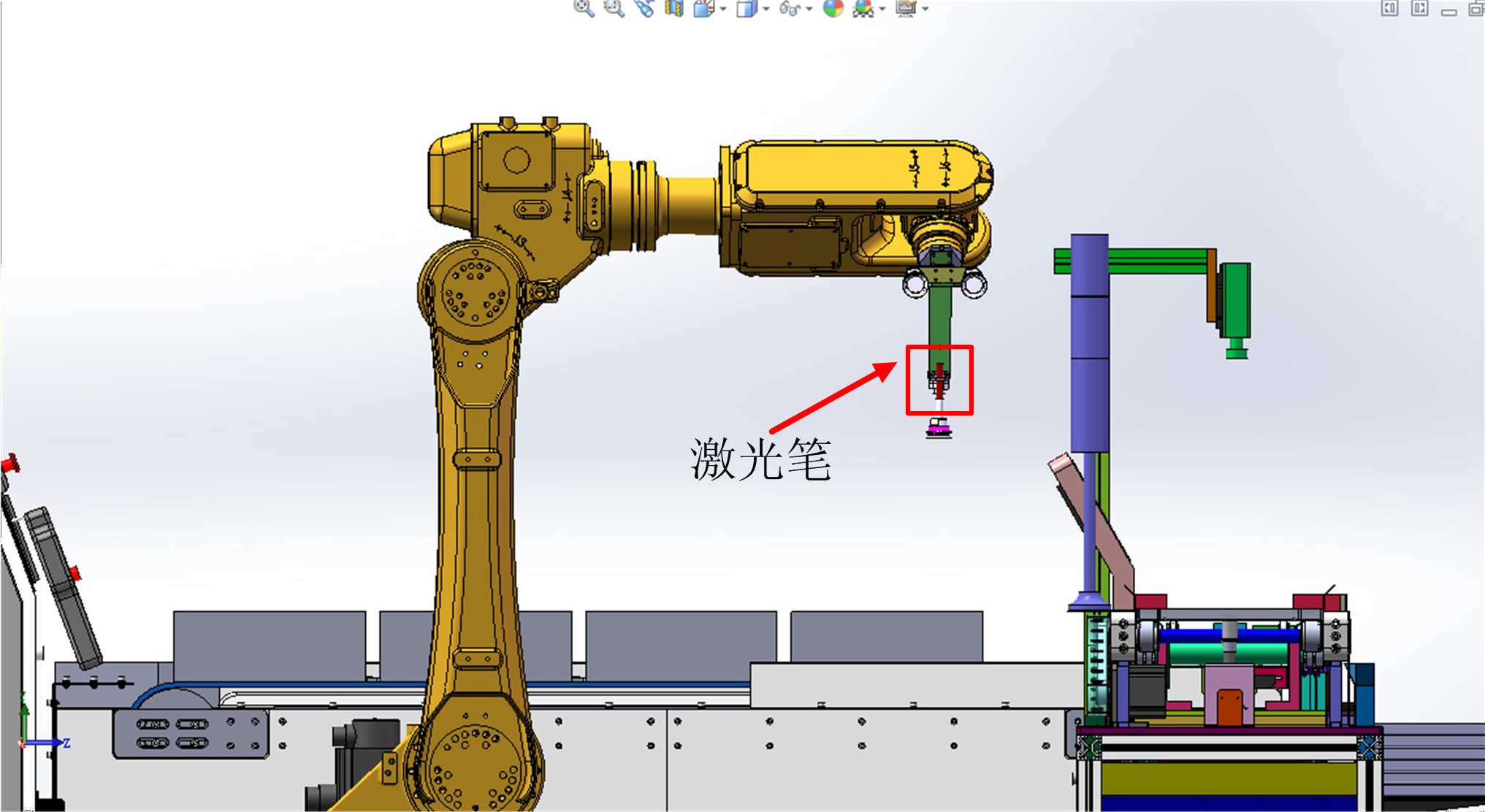 如圖 2-4 所示,在工業(yè)機(jī)器人末端夾具上安裝了一個(gè)激光筆,具體調(diào)節(jié)步驟如下:
