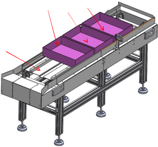 (4) 物品盒流水線,負(fù)責(zé)成品物品盒的裝箱及傳送;