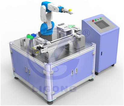 LGL-IR03型 工業(yè)機器人綜合實訓(xùn)平臺桌面型由工業(yè)機器人、實訓(xùn)模塊、氣動工具、基礎(chǔ)臺架和附屬設(shè)備組成,針對職業(yè)院校的教學(xué)特點,綜合理、虛、實一體化教學(xué)特征,選用性能優(yōu)良的設(shè)備,采用*新自動化技術(shù),融合“智能制造、智慧工廠”理念,采用“模塊化、簡易化”設(shè)計方法,可充分學(xué)習(xí)工業(yè)機器人及其周邊應(yīng)用技術(shù),確實掌握相關(guān)實操技能,在不減少實訓(xùn)項目和真實工廠應(yīng)用特點的前提下盡可能確保教學(xué)過程的方便、安全。
