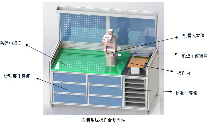 2、平臺分為兩部分:一部分為機器人本體拆裝實訓區(qū)域,一部分為拆裝好定位及精度調試區(qū)域。