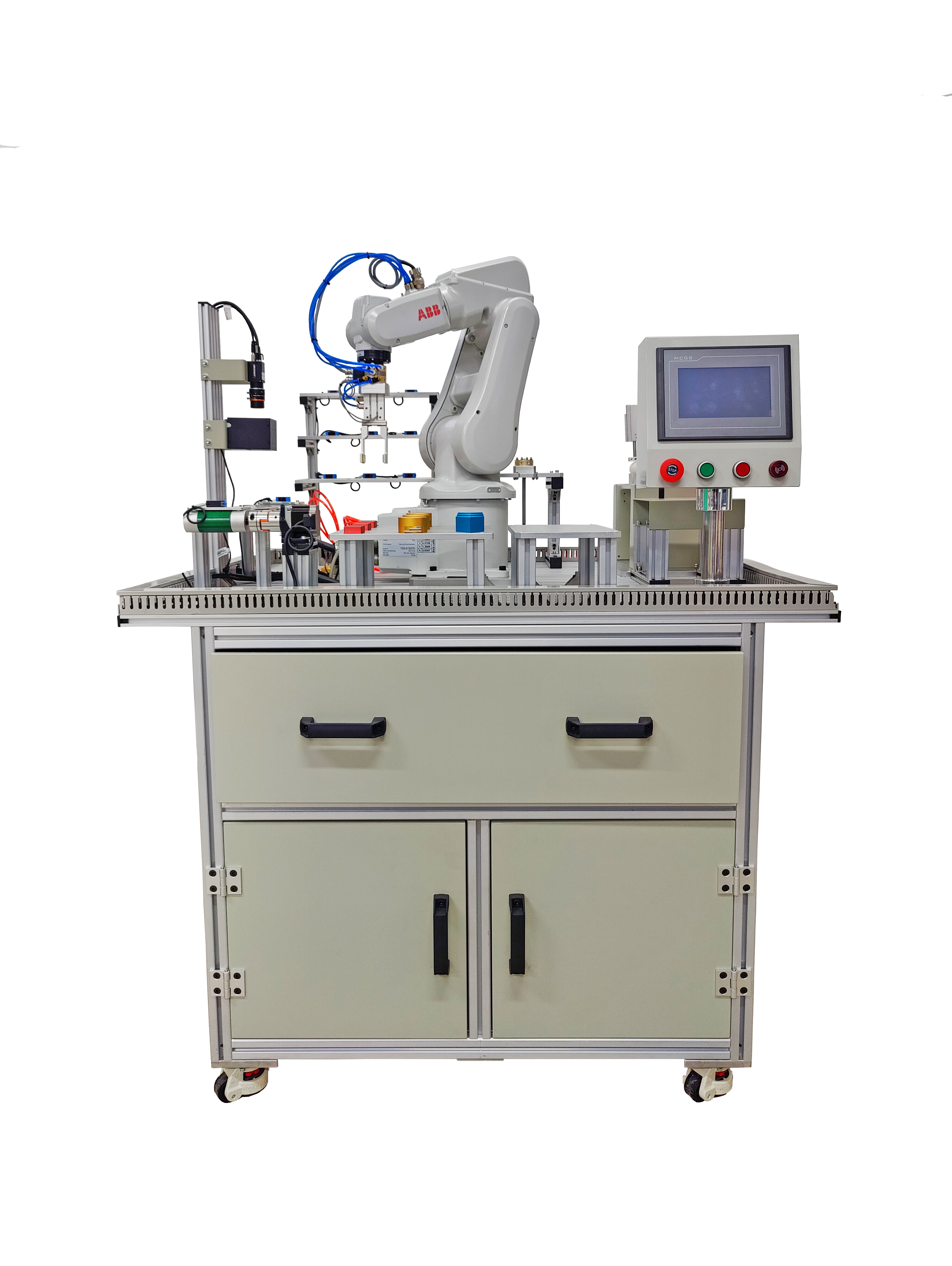 一款完全應(yīng)用工業(yè)以太網(wǎng)技術(shù)、集成多種工業(yè)機(jī)器人應(yīng)用場景的模塊化教學(xué)設(shè)備。