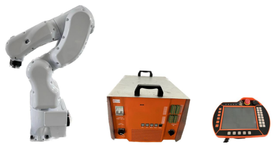 采用六自由度工業(yè)機(jī)器人系統(tǒng),由機(jī)器人本體、機(jī)器人控制器、示教單元、輸入輸出信號(hào)轉(zhuǎn)換器和抓取機(jī)構(gòu)組成。