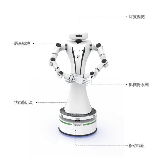 一.機器人整體組成:不少于1個主控模塊、不少于1個移動底盤、不少于2條七軸機械臂、不少于1個末端執(zhí)行器、不少于1個深度視覺傳感器;