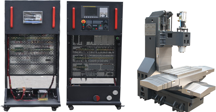 2.機床實訓柜采用鐵質亞光密紋噴塑結構,正面裝有數控系統(tǒng)和操作面板,背面為機床電氣柜,柜內器件布局與實際機床廠的模式一致。電氣柜內的電氣安裝板為多功能網孔板,上面裝有伺服驅動器、交流接觸器、繼電器、保險絲座、斷路器、開關電源、接線端子排和走線槽等;電氣柜底部還設有變壓器和接地端子等。