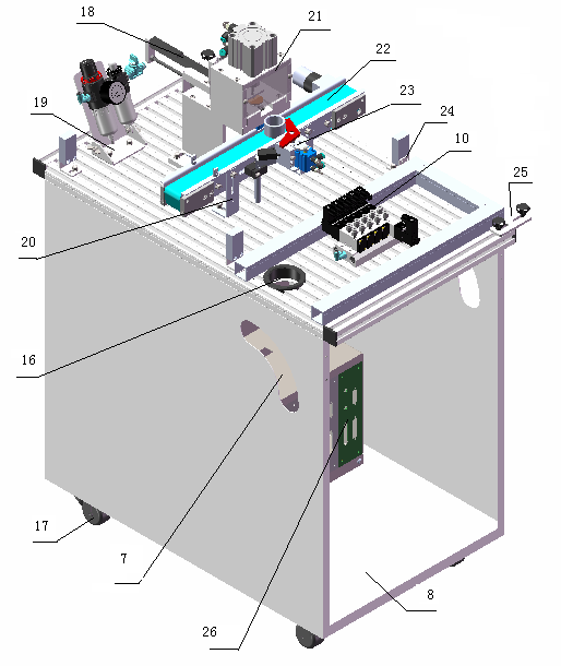 該系統(tǒng)的各站是安裝在帶槽的鋁型板上,各站可容易的連接在一起組成一條自動加工生產(chǎn)線。站內(nèi)由各種模塊化形式構成,各模塊之間易于搭建、拆卸和維護,各工作站之間可隨意組合。