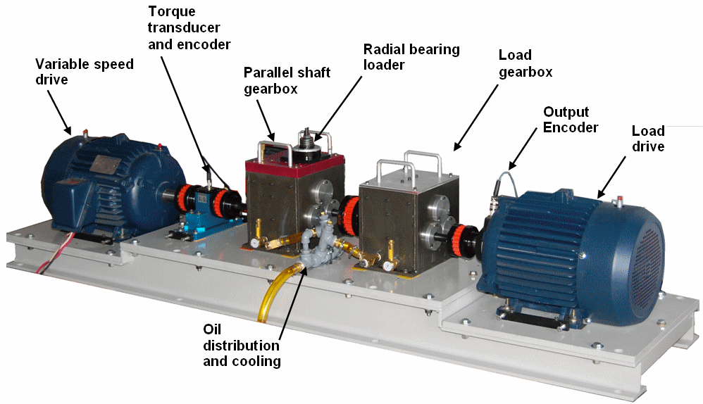 - 負(fù)載箱:一個線的平行軸齒輪箱具有更大的負(fù)載能力比測試變速箱,可配置為兩個階段減少/增加器