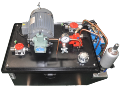 液壓泵站由三相電機、變量葉片泵、單向閥、 風冷器、空氣濾清器、油溫油面計、精密過濾器、壓力表、蓄能器、泄壓閥組等組成。