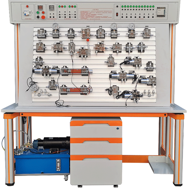 該實(shí)驗(yàn)臺(tái)所有的透明液壓元件均采用進(jìn)口透明有機(jī)玻璃材料應(yīng)現(xiàn)代加工工藝制作而成,可清晰直觀的觀察和了解到液壓元件的內(nèi)部結(jié)構(gòu)原理及液壓傳動(dòng)回路的工作過程。該系統(tǒng)既可對(duì)單個(gè)液壓元件的結(jié)構(gòu)、工作原理及性能進(jìn)行教學(xué),也可以對(duì)常見基本回路的實(shí)驗(yàn)演示學(xué)習(xí),同時(shí)也可以進(jìn)行液壓系統(tǒng)的課程設(shè)計(jì)和畢業(yè)設(shè)計(jì)。