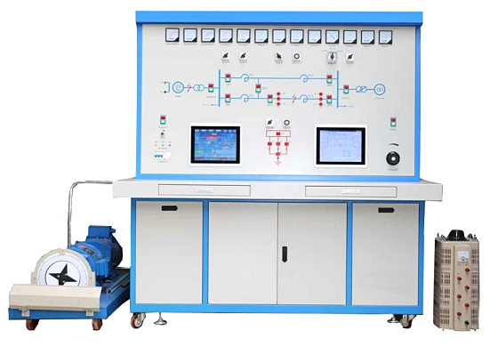 2、實驗平臺由實驗發(fā)電機組、發(fā)電機組控制柜、系統(tǒng)實驗屏、無窮大系統(tǒng)、阻感性負載、監(jiān)控調(diào)度系統(tǒng)等組成。