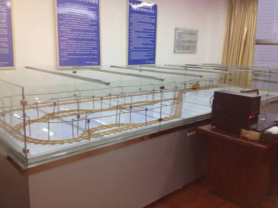 LG-MXD04型 井底車場及電機車信、集、閉系統(tǒng)演示裝置能夠反映出井底車場主要巷道和主要硐室,井底車場與井筒、運輸大巷的聯(lián)系及線路布置。能直觀演示信、集、閉系統(tǒng)的布置方式、程控、工作原理以及電機車在井底車場運行方式,可對道岔進行控制。系統(tǒng)采用微計算機或PLC控制。