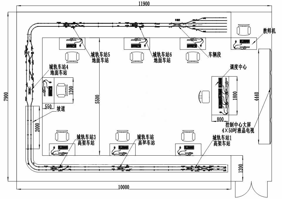 系統(tǒng)包括1套OCC控制中心ATS仿真系統(tǒng)、6套車站ATS仿真系統(tǒng)、1套車輛段計算機聯(lián)鎖仿真系統(tǒng)、1套ATP/ATO仿真系統(tǒng)、1套教員管理系統(tǒng)和1套實物沙盤組成。
