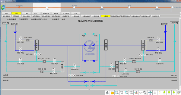 重點(diǎn)針對(duì)軌道交通車站上環(huán)境及設(shè)備的監(jiān)控(BAS)、數(shù)據(jù)監(jiān)測(cè)及調(diào)整,能與FAS系統(tǒng)聯(lián)動(dòng)。