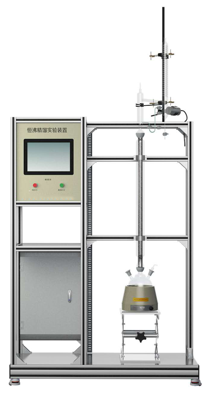 玻璃精餾塔、保溫塔、冷凝器、玻璃塔釜、油水分離器、加熱器、U型壓力計、溫度傳感器、中央處理器、觸摸屏、高品質(zhì)鋁合金型材框架。