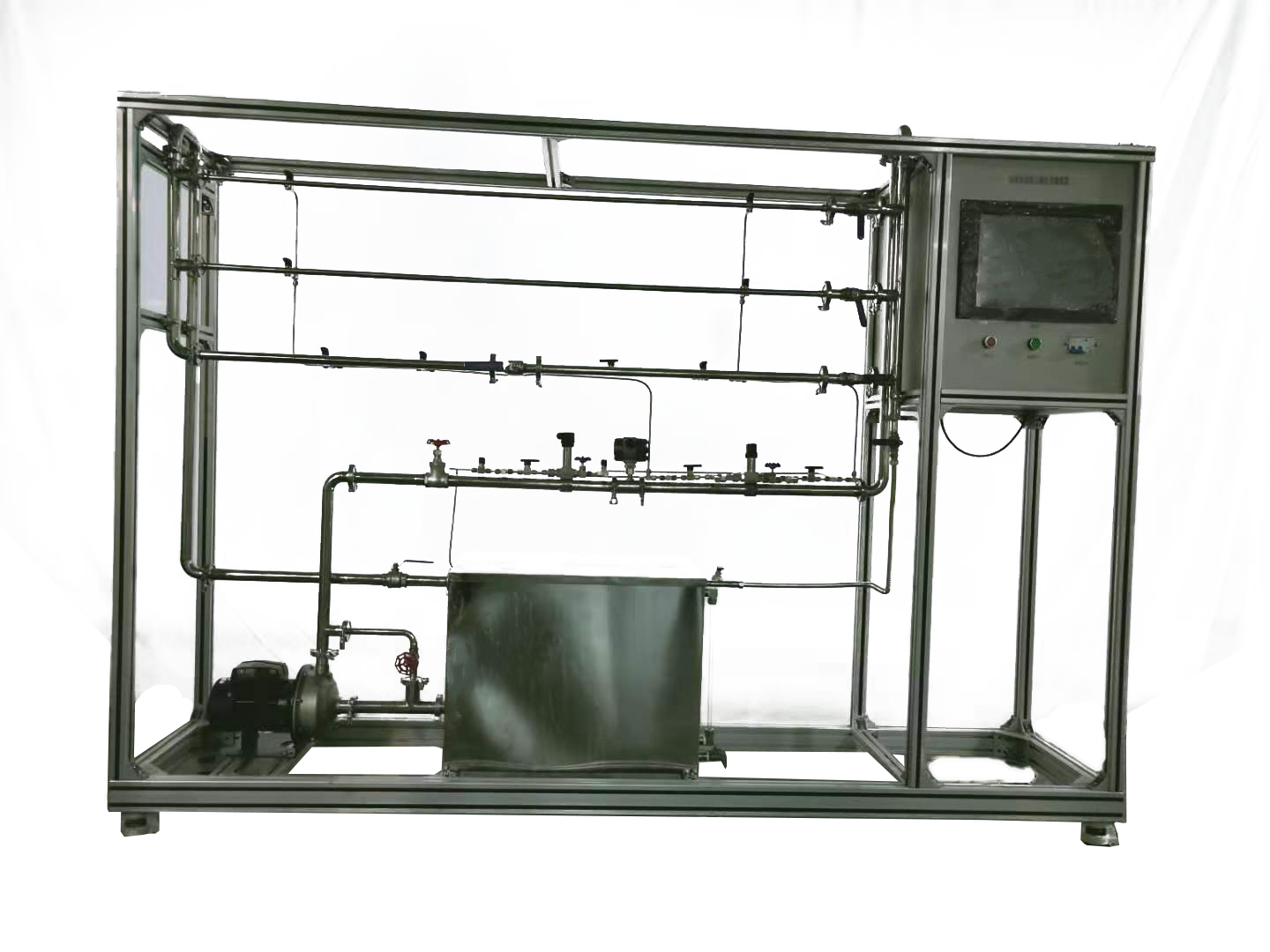 1、水:裝置自帶透明水箱,連接自來水。實驗時經(jīng)離心泵進入測試管路,循環(huán)使用。