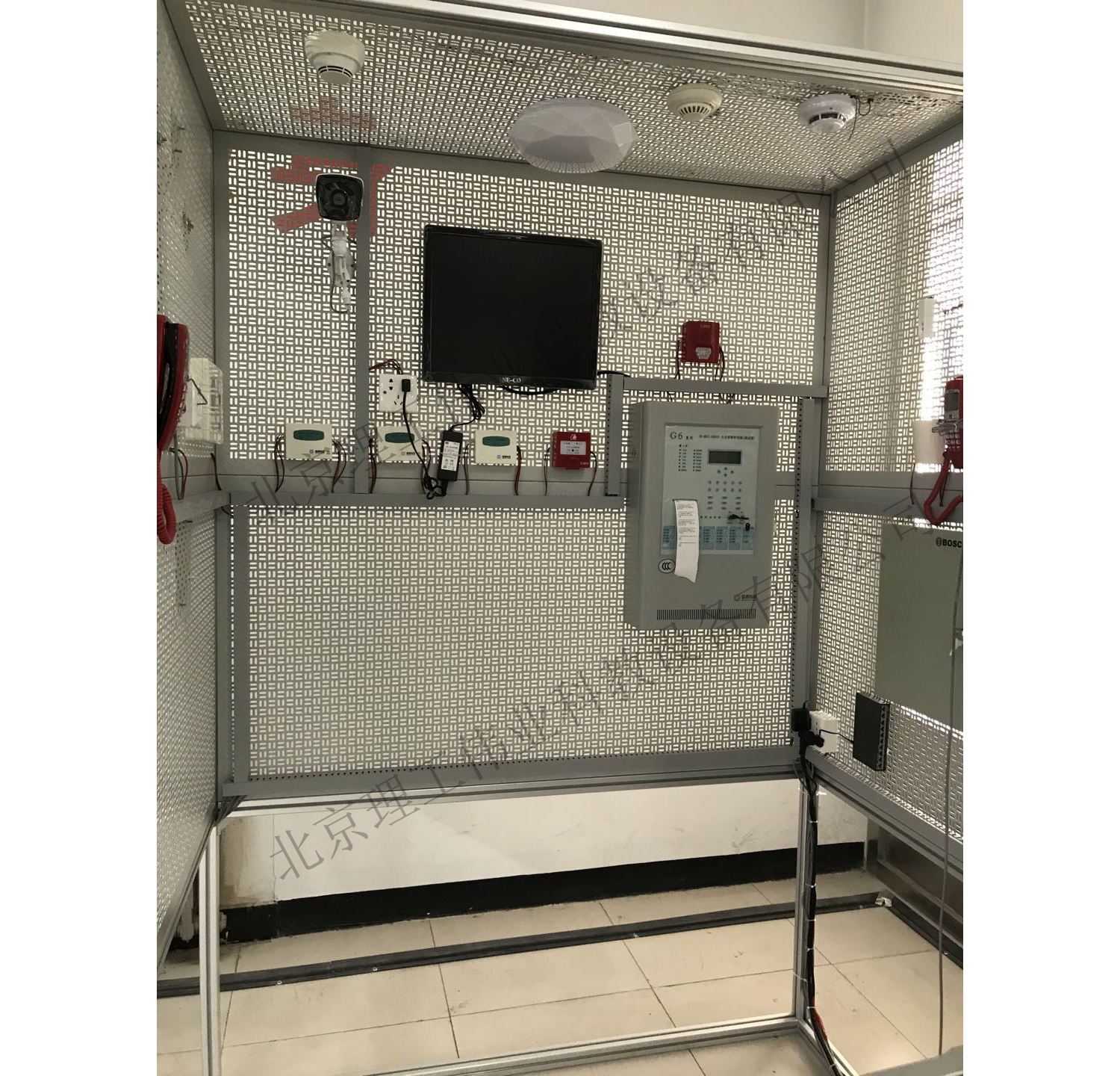 LG-XBX01型 消防探測器及布線實訓系統(tǒng)采用實訓操作區(qū)主要針對以上消防設備操作實訓動手實踐,操作間采用工業(yè)鋁型材結構支架,實訓間干墻面采用為全鋼網(wǎng)孔板結構,設備內(nèi)外無任何木板、輕型材料等輔助材料。使其利于延長使用壽命和無需后期更換耗材,真正實現(xiàn)裝置免維護。模擬墻采用模塊化設計可單獨拆卸任意一塊墻面進行維護。LG-XBX01型 消防探測器及布線實訓系統(tǒng)整體采用冷軋鋼網(wǎng)孔板,表面平整,不設任何凹槽結構??紤]學生實訓沖擊因素,厚度≥1.8mm,若厚度不能達到要求,每個實訓區(qū)的墻面網(wǎng)孔距5*30毫米,便于安裝實訓器件。