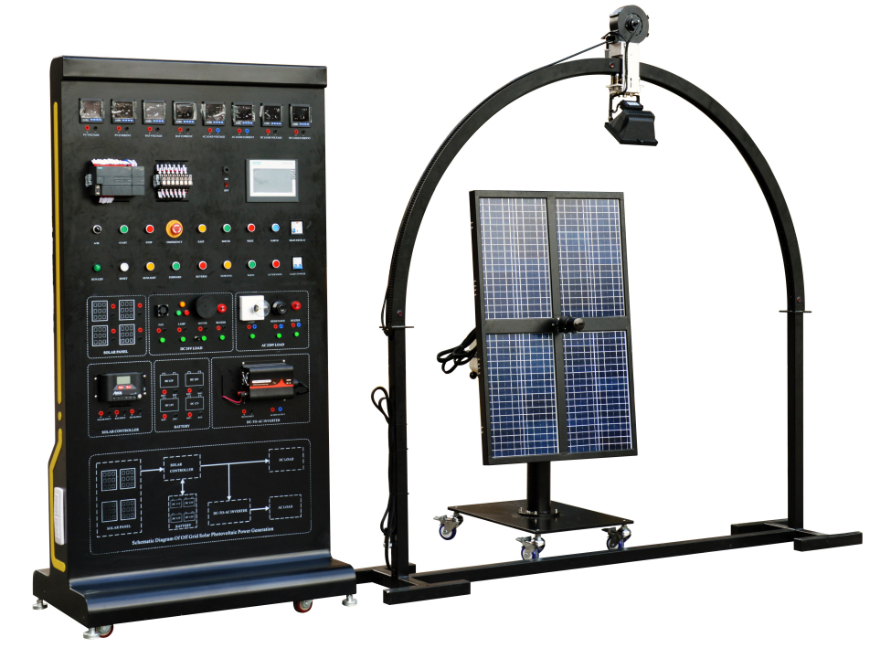 傳統(tǒng)的太陽能發(fā)電技術(shù)主要為太陽能電池板以固定的角度安放在地面上,這樣使太陽能電池板的轉(zhuǎn)換效率大大的降低。而我們根據(jù)太陽運(yùn)動(dòng)軌跡應(yīng)用PLC控制系統(tǒng)、光學(xué)傳感器和直流電機(jī)系統(tǒng)實(shí)現(xiàn)了太陽能電池板的追日。使太陽能電池板始終與太陽入射光線成90°夾角,實(shí)現(xiàn)太陽能電池板的效率最大化。為了使學(xué)生能充分的學(xué)習(xí)新技術(shù)、了解當(dāng)前新能源科技的發(fā)展前沿。我公司結(jié)合當(dāng)前太陽能發(fā)展情況和未來的發(fā)展方向研制出了新型的太陽能發(fā)電設(shè)備:太陽能光伏發(fā)電綜合實(shí)訓(xùn)系統(tǒng)。