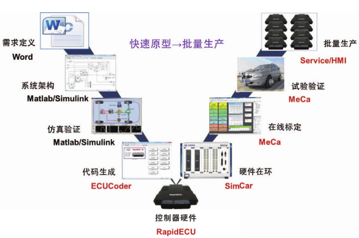 隨著人們對車輛舒適、安全、節(jié)能、環(huán)保等要求的日益提高,汽車智能化和電子化成為未來車輛技術的主要趨勢,由此對電子控制技術及開發(fā)者提出了更大的挑戰(zhàn)。對于國內(nèi)電控開發(fā)者而言,在 ECU 開發(fā)和產(chǎn)品化方面存在更大的困難,需要應對更多的挑戰(zhàn)。ECU 主要包括控制器硬件和控制器軟件,其中的控制器軟件又包括基礎軟件與應用軟件,應用軟件決定了車輛駕駛體驗,是車輛及零部件子系統(tǒng)品牌差異化的主要體現(xiàn),是各大廠商自主研發(fā)的核心知識產(chǎn)權,控制器硬件以及基礎軟件,是保證應用軟件良好運行的平臺。在開發(fā)階段和產(chǎn)品化階段,傳統(tǒng)開發(fā)方式一般采用不同的平臺,這些平臺間的移植和驗證都存在較大的難度,需要花費大量的時間、精力以及昂貴的費用。對于剛剛起步的自主品牌在產(chǎn)量和成本的要求下,對于相對復雜的控制系統(tǒng),新產(chǎn)品的產(chǎn)品化幾乎成了難以完成的任務。