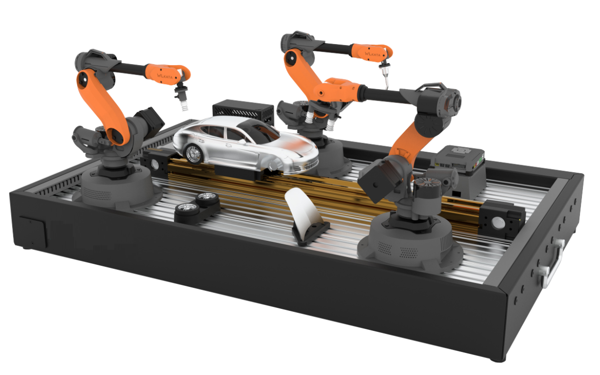桌面六軸工業(yè)機器人*3、滑軌套件*1、智能一體化底座*1、金屬車模型*1