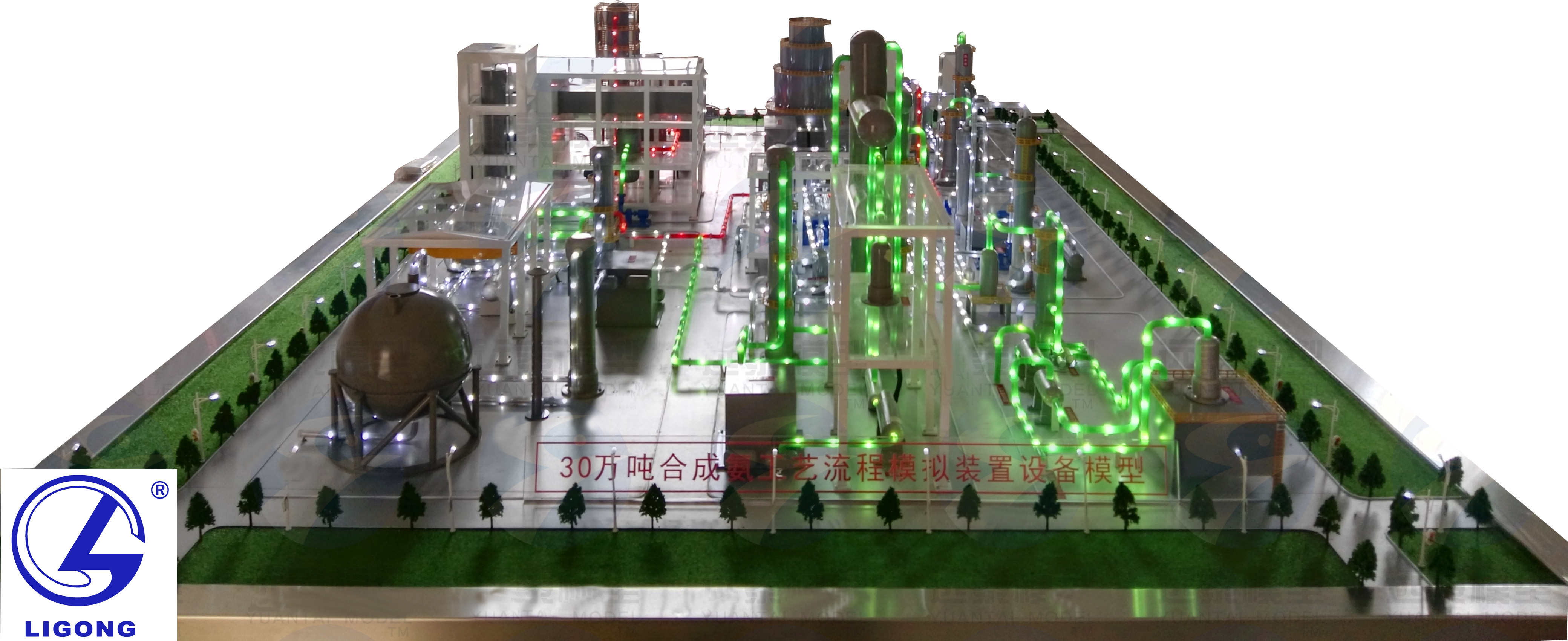 | N-09 | 30萬(wàn)噸合成氨工藝流程演示板 | 4000*2000 | 設(shè)備半剖、分色燈光演示 |